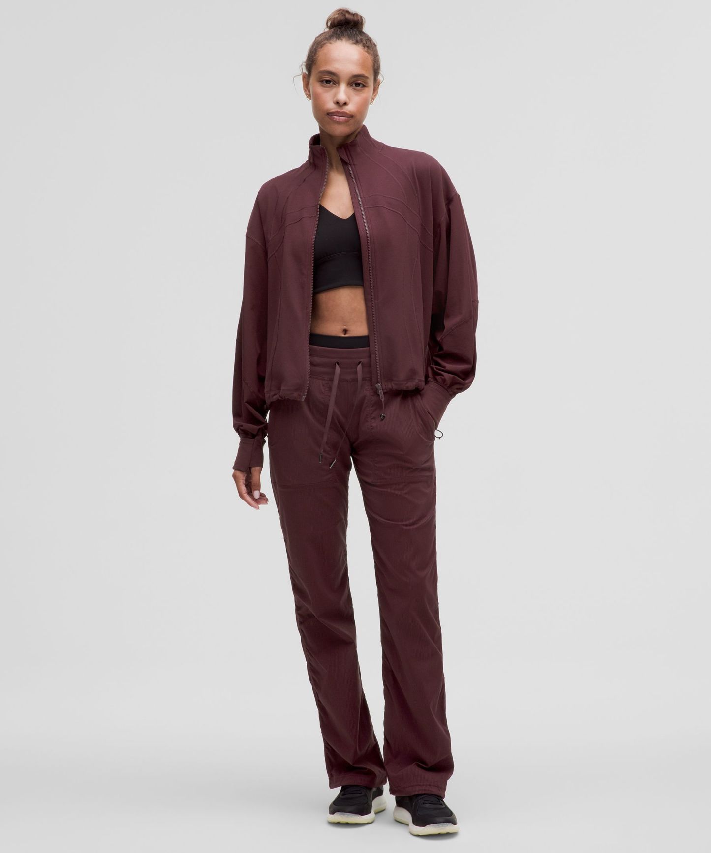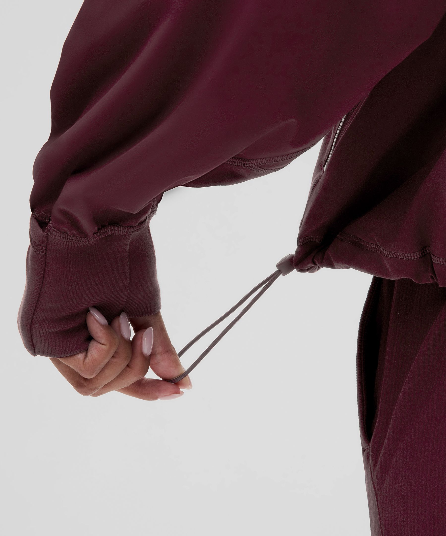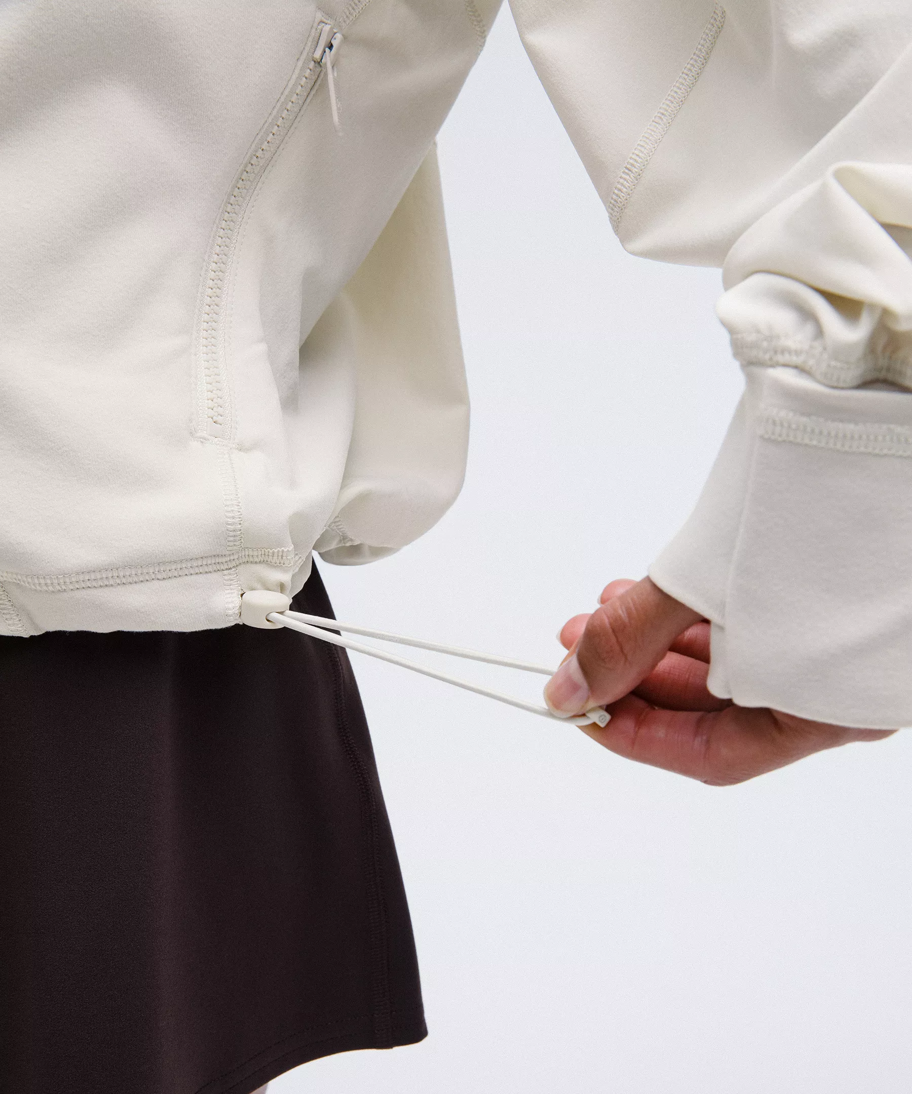Cinch the shock cords at the hem to adjust the shape