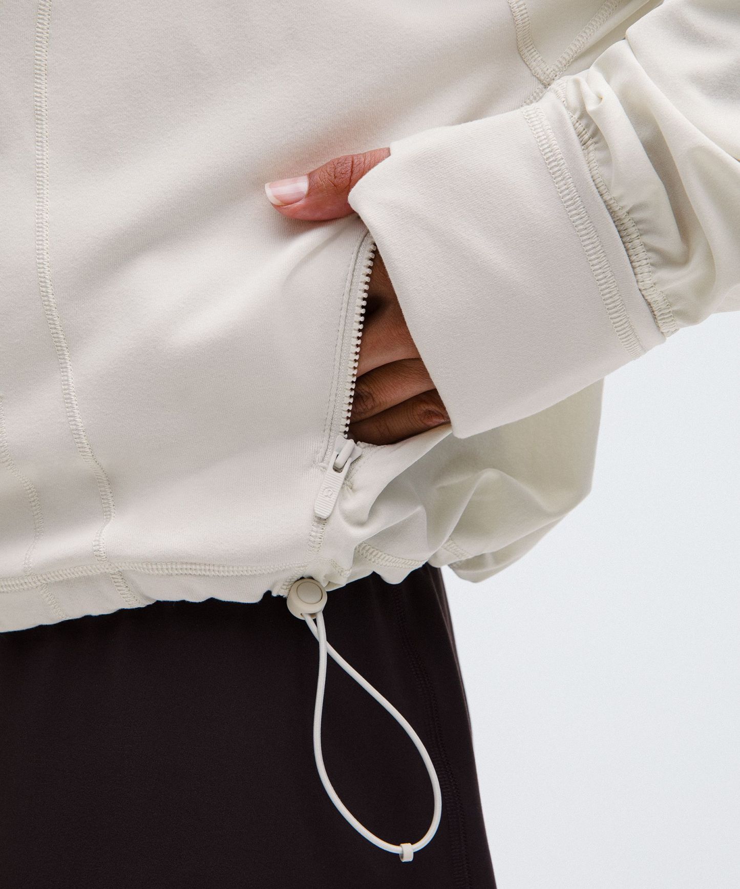 Elastic zipper pull doubles as an emergency hair tie